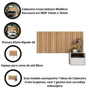 Cabeceira Box Solteiro 0.90 Efeito Ripado C/ 1 Mesas de Cabeceira Suspensa Cross Freijó - Movelove