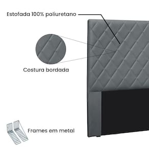 Cabeceira Cama Box Casal 140 Cm Dubai Veludo Cinza S04 - D'rossi