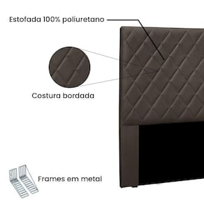 Dormir bem e manter-se seguro na hora de relaxar são fatores importantes que influenciam na qualidade do sono. Unir esses pontos com uma decoração incrível seria perfeito, não é mesmo? Que tal começar essa mudança pela cabeceira da sua cama!? A Cabeceira Dubai sem dúvida vai roubar a cena de tão linda e aconchegante! A estrutura é feita em madeira de eucalipto, uma opção que ressalta a durabilidade e beleza da peça. A cabeceira é preenchida com espuma D23, garantindo um conforto ideal para noites mais tranquilas. Este modelo é indicado para Cama Box Casal de 140 cm, contém costura em losangos que conferem uma textura maleável e um visual refinado. O revestimento foi feito no Veludo, um tecido de alta qualidade perfeito para criar uma atmosfera mais aconchegante ao local. As sapata são de plástico além de serem muito resistentes garantem maior flexibilidade e sustentação à peça. E não menos importante acompanha frame em metal que é o suporte ideal para fixar a cabeceira na cama box. O design desta peça apresenta um elemento estético sofisticado, que transformará instantaneamente o ambiente e impedirá que a passagem de temperaturas (frio/quente) que se concentram na parede, passem diretamente para o usuário. A Cabeceira Dubai é a opção mais adequada para o seu dormitório, afinal de contas você merece o que há de melhor para completar a decoração da sua casa. Adquira a Cabeceira Dubai antes que acabe o estoque!