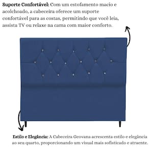 Cabeceira Cama Box Casal 140 Cm Geovana Suede Azul Marinho