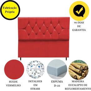 Cabeceira Casal Geovana Suede 140 cm - Detalhes de Capitonê com Strass