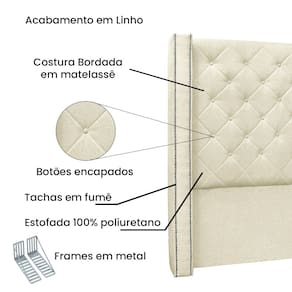 Dormir bem e manter-se seguro na hora de relaxar são fatores importantes que influenciam na qualidade do sono. Unir esses pontos com uma decoração incrível seria perfeito, não é mesmo? Que tal começar essa mudança pela cabeceira da sua cama!? A Cabeceira Vicenza sem dúvida vai roubar a cena de tão linda e aconchegante! Contém estrutura feita em madeira de eucalipto, uma opção que ressalta a durabilidade e beleza da peça. A cabeceira é preenchida com espuma D23, garantindo um conforto ideal para noites mais tranquilas. Este modelo é indicado para Cama Box Casal de 140 cm, possui costura em losangos bordada em matelassê, tachas em fumê e botões encapados que conferem uma textura maleável e um visual refinado. O revestimento foi feito no Linho, um tecido de alta qualidade no tom Pérola perfeita para criar uma atmosfera mais aconchegante ao local. As sapata são de plástico além de serem muito resistentes garantem maior flexibilidade e sustentação à peça. E não menos importante acompanha frame em metal que é o suporte ideal para fixar a cabeceira na cama box. O design desta peça apresenta um elemento estético sofisticado, que transformará instantaneamente o ambiente e impedirá que a passagem de temperaturas (frio/quente) que se concentram na parede, passem diretamente para o usuário. A Cabeceira Vicenza é a opção mais adequada para o seu dormitório, afinal de contas você merece o que há de melhor para completar a decoração da sua casa. Adquira a Cabeceira Vicenza antes que acabe o estoque!