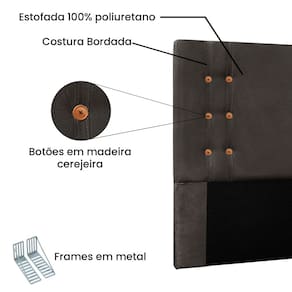 Sua estrutura garante durabilidade e resistência. O revestimento em tecido suede proporciona um toque suave, e conforto ideal para momentos de descanso ou leitura. Os botões de madeira de cerejeira trazem um charme, elevando o estilo do seu quarto. Renove o visual do seu espaço, compre já!