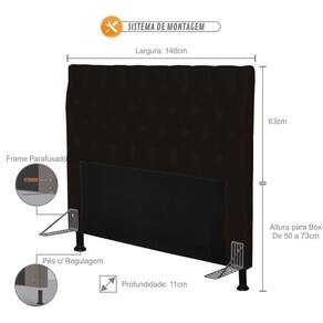Largura: 140 cm | Altura: 126 cm | Profundidade: 11 cm | Peso: 10 kg | Cor: Marrom | Requere Montagem: Sim | Material do Estofado: Corano | Tamanhos de Cama: Casal