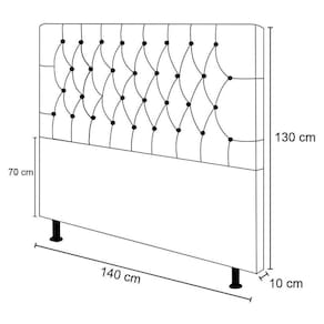 Largura: 140 cm | Altura: 130 cm | Profundidade: 10 cm | Peso: 10 kg | Cor: Preto | Requere Montagem: Sim | Material do Estofado: Corano | Tamanhos de Cama: Casal