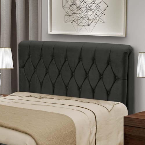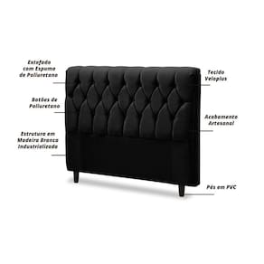 MARCA: Dobuê | MODELO: Cabeceira Istambul | COR: Preto | MEDIDAS: A: 123 cm L: 140 cm P: 17 cm | ESTRUTURA: Madeira Branca industrializada, produzido com madeiras provenientes de reflorestamento | REVESTIMENTO: Tecido Veloplus | ACABAMENTO: Artesanal, estofado com espuma de Poliuretano e botões com o mesmo tecido | PÉS: Sim, 2 pés em PVC medindo 13 cm de altura | PESO: 16kg | DESCRICAO: A cabeceira Istambul era o que faltava para completar seu quarto, um complemento para sua cama box deixando ainda mais bonito seu ambiente. Produzida em Madeira branca industrializada. Ela tem detalhe em captonet com revestimento em tecido Veloplus, com e Cor: Preto