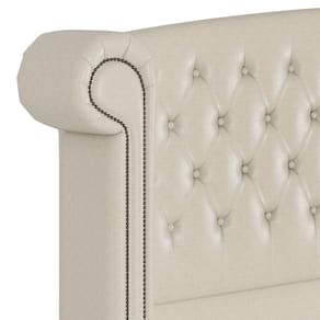 Com seu design curvo e botões revestidos, traz sofisticação ao ambiente, enquanto as laterais com tachinhas complementam o visual charmoso. Além de sua beleza visual, a Cabeceira Estofada proporciona um apoio confortável, ideal para momentos de leitura ou descanso. A espuma D20 garante maciez extra, enquanto a estrutura de madeira de eucalipto oferece durabilidade e resistência. Detalhes como os pés com sapatas plásticas e o forro de Kami TNT reforçam a qualidade e o cuidado na construção. Essa Cabeceira não é apenas um elemento decorativo, mas uma peça que eleva o Quarto.