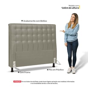 Com a Cabeceira Estofada Ciara, você não recebe apenas um produto de alta qualidade, mas também um pacote completo. Ela acompanha um resistente frame para fixação no box e pés de plástico (A cor dos pés pode variar de acordo com o lote), garantindo estabilidade e segurança.