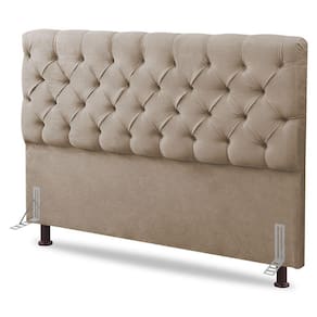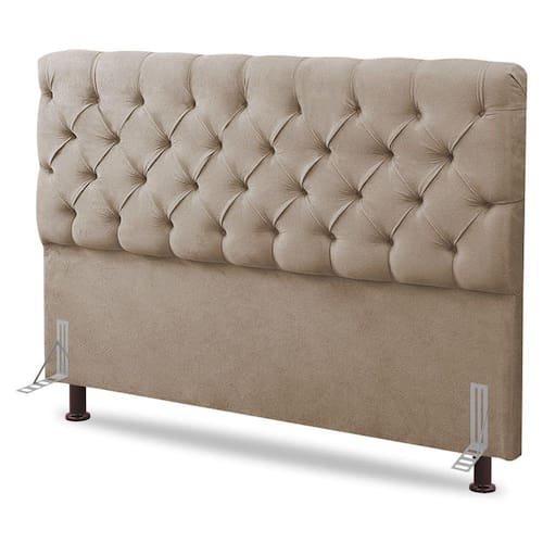 Cabeceira Cama Box Casal King Size Lylla 195cm Capitonê com Frame Suede Bege - Desk Design