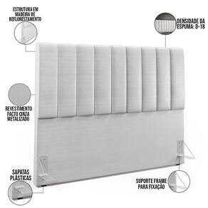 Cabeceira Cama Box Casal Queen 160 Cm Dália W01 Facto Cinza Metalizado - Lyam Decor Com bastante graciosidade a Cabeceira Cama Box Casal Queen 160 Cm Dália W01 Facto Cinza Metalizado - Lyam Decor traz conforto e modernidade ao seu quarto. Com ela é possível montar várias combinações diferentes, as possibilidades são infinitas visto que ela conversa super bem com o restante da mobília e traz harmonia ao ambiente. Produzida com materiais de máxima qualidade garante aconchego e tranquilidade para seus momentos de descanso, seja para o quarto do casal ou de hospedes. Aproveite!! Dimensões da Cabeceira (L x A x P) 160 x 120 x 8 cm Dimensões do Frame (L x A x P) 5,5 x 13,5 x 16,5 cm Características da Cabeceira: Estrutura em madeira reflorestada. Revestimento em tecido sintético Facto Cinza, acabamento metalizado. Densidade da Espuma D-18. Acompanha todos os acessórios para fixação. Acompanha suporte frame produzido em chapa de ferro com acabamento em esmalte PU na cor alumínio. Possui sapatas plásticas. Características do Frame: Produzido em chapa de ferro 1,5 mm. Acabamento em esmalte PU na cor Alumínio. Acessórios para fixação: 04 Parafusos cabeça chata auto atarraxantes 5,0x25mm e 04 arruelas 1/4. - Por se tratar de estofado as medidas podem ter uma pequena variação de até 3 cm. - A tonalidade do produto real poderá ter ligeira variação devido o lote de tecidos. Observações importantes: - Produto para uso residencial em ambiente interno, não devendo ficar exposto diretamente ao sol, calor e umidade excessivos. - Pode haver alguma diferença de tonalidade entre a imagem e o produto real, por conta do tratamento de imagens e a calibração de cores do seu monitor. - As imagens são meramente ilustrativas, não acompanham objetos de decoração e eletrônicos. - Ao receber a mercadoria, o cliente deve verificar as condições da embalagem, caso haja alguma não assine o de . - Montagem, desmontagem e outras instalações serão de responsabilidade do cliente. Não nos responsabilizamos, no ato da , por subir escadas/elevadores ou pelo por guincho em apartamentos. Eventuais despesas são de responsabilidade do comprador. - Confira as dimensões do produto e certifique-se de que passará normalmente por supostos elevadores, portas, escadas e/ou corredores de sua residência. NA