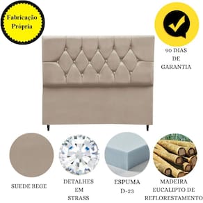 Simples detalhes são o suficiente para mudar a cara do seu quarto, não é? E um belo exemplo disso é a Cabeceira Estofada Geovana, revestida em suede e fabricada em madeira eucalipto de altíssima qualidade. Ah, sem contar que temos os detalhes em capitonê strass que dão um toque de sofisticação e elegância para o seu espaço. Ela é uma ótima alternativa não só para acompanhar sua cama, como também garantir que você tenha um apoio mais aconchegante para as costas quando estiver sentado.