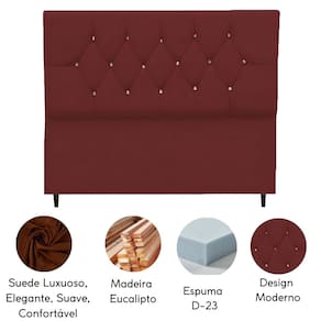 Fabricada com materiais de alta qualidade, como madeira eucalipto e revestimento em suede, esta cabeceira é durável e resistente, garantindo não apenas estilo, mas também funcionalidade para o seu ambiente.