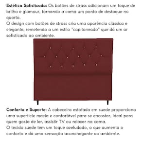 Fabricada com materiais de alta qualidade, como madeira eucalipto e revestimento em Suede, esta cabeceira é durável e resistente, garantindo não apenas estilo, mas também funcionalidade para o seu ambiente.