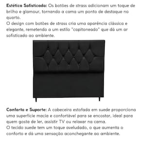 Com botões Strass, dispostos em uma padronagem elegante, trazem um brilho sutil e adicionam um toque de glamour à cabeceira. Cada detalhe foi cuidadosamente trabalhado, fazendo dela o ponto focal do seu quarto.