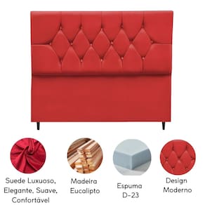 Estrutura: Madeira Eucalipto Tecido: Suede Material dos pés: Madeira Eucalipto Botões: Strass Instalação: Simples! Ficará apoiada entre a cama e a parede. (Não acompanha kit frame) Montagem: Já vem montada, basta rosquear os 2 pés inclusos. Instruções de Limpeza: Use um pano limpo e levemente úmido. Será entregue em 1 volume, facilitando a sua recepção.