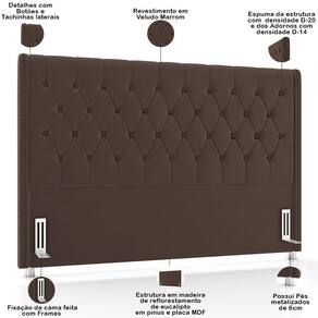 ColorSimple: Marrom | ColorSupplier: Marrom | Color: Marrom | ColorFamily: Marrom | Material: Espuma, Madeira, MDF | MaterialFamily: Espuma, Madeira, MDF | OriginCountry: | OriginState: PR | ProductContents: 01 Cabeceira e Frames | Model: Frizza | ProductLength: 12cm | SupplierSimpleName: Cabeceira Cama Box King 195cm Estofada Frizza P05 Veludo Marrom - Lyam Decor | ProductInstructions: Produto para uso residencial em ambiente interno, não devendo ficar exposto diretamente ao sol, calo | SizeDescription: Altura: 130cm x Largura: 205cm x Profundidade: 12cm | ProductWeight: 22 kg | ProductHeight: 130cm | ProductWidth: 205cm | ProductWarranty: 90 dias após o do produto.