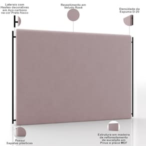 Model: Goya | Material: Espuma, Madeira, MDF, Aço | Color: Rosa | OriginCountry: | ProductContents: 01 Cabeceira | OriginState: PR | ColorFamily: Rosa | ColorSupplier: Rosê | ColorSimple: Rosa | MaterialFamily: Espuma, Madeira, MDF, Aço | ProductWidth: 195cm | ProductWeight: 20 kg | SupplierSimpleName: Cabeceira Cama Box King 195cm Estofada Goya P05 Veludo Rosê - Lyam Decor | ProductWarranty: 90 dias após o do produto. | ProductInstructions: Produto para uso residencial em ambiente interno, não devendo ficar exposto diretamente ao sol, calo | SizeDescription: Altura: 130cm x Largura: 195cm x Profundidade: 10cm | ProductLength: 10cm | ProductHeight: 130cm
