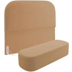Cabeceira Cama Box King 195cm Lanna Com Puff Recamier Doha W01 Bouclê Mostarda - Lyam Decor