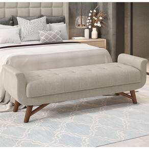 A Cabeceira Casal tem um design moderno, com detalhes quadrados que dão um toque de sofisticação ao quarto. A estrutura é feita de eucalipto, uma madeira resistente e sustentável, e a espuma é D20, garantindo uma boa noite de sono. O conjunto vem com um frame que facilita a instalação da cama. A Calçadeira é uma peça versátil, que pode ser usada tanto no quarto quanto na Sala de Estar, como um banco ou um apoio para os pés. Ele tem um detalhe capitonê no assento, que cria um efeito acolchoado e charmoso. Os pés são de madeira, combinando, e a espuma é D23, oferecendo mais firmeza e durabilidade. Ambos os produtos são revestidos em Boucle, um tecido macio e aconchegante, que está em alta na decoração. Você vai se surpreender com a beleza, o conforto e a qualidade desses produtos.