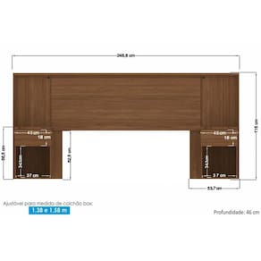 Dimensões(Cm): Comprimento(Profundidade): 46cm x Largura: 246cm x Altura: 115cm