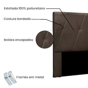 Dormir bem e manter-se seguro na hora de relaxar são fatores importantes que influenciam na qualidade do sono. Unir esses pontos com uma decoração incrível seria perfeito, não é mesmo? Que tal começar essa mudança pela cabeceira da sua cama!? A Cabeceira Aquilla sem dúvida vai roubar a cena de tão linda e aconchegante! A estrutura é feita em madeira de eucalipto, uma opção que ressalta a durabilidade e beleza da peça. A cabeceira é preenchida com espuma D23, garantindo um conforto ideal para noites mais tranquilas. Este modelo é indicado para Cama Box Queen de 160 cm, contém costura em losangos com botões encapados que conferem uma textura maleável e um visual refinado. O revestimento foi feito no Veludo, um tecido de alta qualidade no tom Marrom perfeita para criar uma atmosfera mais aconchegante ao local. As sapata são de plástico além de serem muito resistentes garantem maior flexibilidade e sustentação à peça. E não menos importante acompanha frame em metal que é o suporte ideal para fixar a cabeceira na cama box. O design desta peça apresenta um elemento estético sofisticado, que transformará instantaneamente o ambiente e impedirá que a passagem de temperaturas (frio/quente) que se concentram na parede, passem diretamente para o usuário. A Cabeceira Aquilla é a opção mais adequada para o seu dormitório, afinal de contas você merece o que há de melhor para completar a decoração da sua casa. Adquira a Cabeceira Aquilla antes que acabe o estoque!