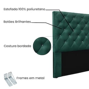 Dormir bem e manter-se seguro na hora de relaxar são fatores importantes que influenciam na qualidade do sono. Unir esses pontos com uma decoração incrível seria perfeito, não é mesmo? Que tal começar essa mudança pela cabeceira da sua cama!? A Cabeceira Tania sem dúvida vai roubar a cena de tão linda e aconchegante! A estrutura é feita em madeira de eucalipto, uma opção que ressalta a durabilidade e beleza da peça. A cabeceira é preenchida com espuma D23, garantindo um conforto ideal para noites mais tranquilas. Este modelo é indicado para Cama Box Queen de 160 cm, contém costura bordada em losangos com botões brilhantes que conferem uma textura maleável e um visual refinado. O revestimento foi feito no Veludo, um tecido de alta qualidade perfeito para criar uma atmosfera mais aconchegante ao local. As sapata são de plástico além de serem muito resistentes garantem maior ibilidade e sustentação à peça. E não menos importante acompanha frame em metal que é o suporte ideal para fixar a cabeceira na cama box. O design desta peça apresenta um elemento estético sofisticado, que transformará instantaneamente o ambiente e impedirá que a passagem de temperaturas (frio/quente) que se concentram na parede, passem diretamente para o usuário. A Cabeceira Tania é a opção mais adequada para o seu dormitório, afinal de contas você merece o que há de melhor para completar a decoração da sua casa. Adquira a Cabeceira Tania antes que acabe o estoque!