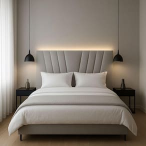 A cabeceira estofada é o toque final que transforma sua cama em um verdadeiro ponto de destaque. Com design moderno e linhas geométricas, ela traz sofisticação e valoriza a decoração do quarto.