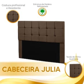 Cabeceira Cama Box Queen 1,60 Estofada Julia Sued Marrom Castor Speciale Home Marrom Castor A cabeceira Julia possui um lindo design que te ajuda a renovar a decoracao do seu quarto, sem deixar de lado o conforto e a praticidade. Resistente e confeccionada com materiais de alta qualidade, suas medidas sao indicadas para cama box de 1.58 cm. Combine-a com travesseiros e almofadas de sua preferencia e torne sua decoracao ainda mais charmosa e aconchegante. Caracteristicas: Material da Estrutura: Madeira de Reflorestamento Espuma: D12 Revestimento: Sued Acabamento: Com Botoes Possui Pes: Nao Sapata: 2 unidades Material Sapata: Plastico com altura de 1 cm Tipo de Fixacao da Cabeceira: Fixacao no Box por parafuso Voce ira receber: 1 Volume, contendo 1 cabeceira e parafusos. Recomendacao de Limpeza: Utilize pano levemente umido Montagem: O Produto vai montado, somente para fixacao da cabeceira no Box (sugerimos que a montagem seja feita por um especializado).