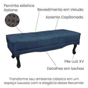 Dormir bem e manter-se seguro na hora de relaxar são fatores importantes que influenciam na qualidade do sono. Juntos, a Cabeceira Vicenza e o Puff Recamier Vicenza criam uma sinergia única, onde o requinte encontra a funcionalidade! Este modelo é indicado para Cama Box Solteiro de 160 cm. A Cabeceira Vicenza contém uma estrutura em madeira de eucalipto preenchida com espuma D23, possui costura em losangos bordada em matelassê, tachas em fumê e botões encapados que conferem uma textura maleável e um visual refinado, contém frame em metal e sapatas de plástico PVC que além de serem muito resistentes garantem maior ibilidade e sustentação à peça. O Puff Recamier Vicenza é preenchido com espuma D26 e possui uma capacidade de suportar até 120 kg. Seus pés são feitos de madeira maciça no estilo Luís XV, proporcionando estabilidade e robustez à peça. Ele contém também detalhes refinados como as tachinhas em metal fumê na borda e no assento detalhes em capitonê, percinta elástica italiana sendo um suporte adicional que confere maior durabilidade. O tecido desse conjunto é feito em Veludo que confere um acabamento suave e luxuoso, adicionando um toque de requinte ao design. Esta harmoniosa união de móveis não só acrescenta um toque de sofisticação ao seu espaço, mas também proporciona um ambiente acolhedor e convidativo, onde o luxo e o conforto se fundem em perfeita sintonia. Permita-se envolver neste oásis de elegância e bem-estar, onde cada detalhe celebra o estilo e o bom gosto.