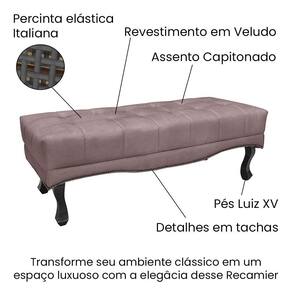 Diferenciais da do Recamier: Tachinhas em metal fumê. No assento possui detalhes em capitonê e percinta elástica Italiana