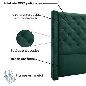 Dormir bem e manter-se seguro na hora de relaxar são fatores importantes que influenciam na qualidade do sono. Juntos, a Cabeceira Vicenza e o Puff Recamier Vicenza criam uma sinergia única, onde o requinte encontra a funcionalidade! Este modelo é indicado para Cama Box Solteiro de 160 cm. A Cabeceira Vicenza contém uma estrutura em madeira de eucalipto preenchida com espuma D23, possui costura em losangos bordada em matelassê, tachas em fumê e botões encapados que conferem uma textura maleável e um visual refinado, contém frame em metal e sapatas de plástico PVC que além de serem muito resistentes garantem maior flexibilidade e sustentação à peça. O Puff Recamier Vicenza é preenchido com espuma D26 e possui uma capacidade de suportar até 120 kg. Seus pés são feitos de madeira maciça no estilo Luís XV, proporcionando estabilidade e robustez à peça. Ele contém também detalhes refinados como as tachinhas em metal fumê na borda e no assento detalhes em capitonê, percinta elástica italiana sendo um suporte adicional que confere maior durabilidade. O tecido desse conjunto é feito em Veludo em tom Verde que confere um acabamento suave e luxuoso, adicionando um toque de requinte ao design. Esta harmoniosa união de móveis não só acrescenta um toque de sofisticação ao seu espaço, mas também proporciona um ambiente acolhedor e convidativo, onde o luxo e o conforto se fundem em perfeita sintonia. Permita-se envolver neste oásis de elegância e bem-estar, onde cada detalhe celebra o estilo e o bom gosto.