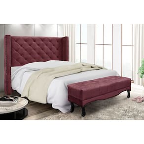 Dormir bem e manter-se seguro na hora de relaxar são fatores importantes que influenciam na qualidade do sono. Juntos, a Cabeceira Vicenza e o Puff Recamier Vicenza criam uma sinergia única, onde o requinte encontra a funcionalidade! Este modelo é indicado para Cama Box Solteiro de 160 cm. A Cabeceira Vicenza contém uma estrutura em madeira de eucalipto preenchida com espuma D23, possui costura em losangos bordada em matelassê, tachas em fumê e botões encapados que conferem uma textura maleável e um visual refinado, contém frame em metal e sapatas de plástico PVC que além de serem muito resistentes garantem maior flexibilidade e sustentação à peça. O Puff Recamier Vicenza é preenchido com espuma D26 e possui uma capacidade de suportar até 120 kg. Seus pés são feitos de madeira maciça no estilo Luís XV, proporcionando estabilidade e robustez à peça. Ele contém também detalhes refinados como as tachinhas em metal fumê na borda e no assento detalhes em capitonê, percinta elástica italiana sendo um suporte adicional que confere maior durabilidade. O tecido desse conjunto é feito em Veludo em tom Vinho que confere um acabamento suave e luxuoso, adicionando um toque de requinte ao design. Esta harmoniosa união de móveis não só acrescenta um toque de sofisticação ao seu espaço, mas também proporciona um ambiente acolhedor e convidativo, onde o luxo e o conforto se fundem em perfeita sintonia. Permita-se envolver neste oásis de elegância e bem-estar, onde cada detalhe celebra o estilo e o bom gosto.