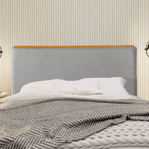 Cabeceira Cama Box Queen 1,60m Estofada Detalhe em Madeira Java Linho Cinza