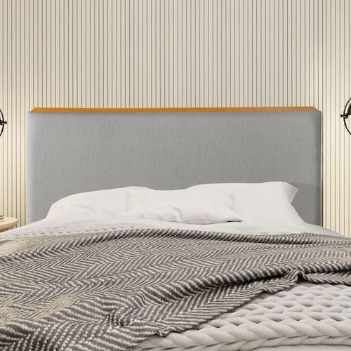 AS IMAGENS SÃO MERAMENTE ILUSTRATIVAS E PODEM SOFRER VARIAÇÕES DE COR E PEQUENOS DETALHES DE ACORDO COM O SEU MONITOR, ILUMINAÇÃO DO AMBIENTE E ATÉ MESMO A SUA PERCEPÇÃO VISUAL.Cabeceira Cama Box Queen 1,60m Estofada Detalhe em Madeira Java Linho Cinza