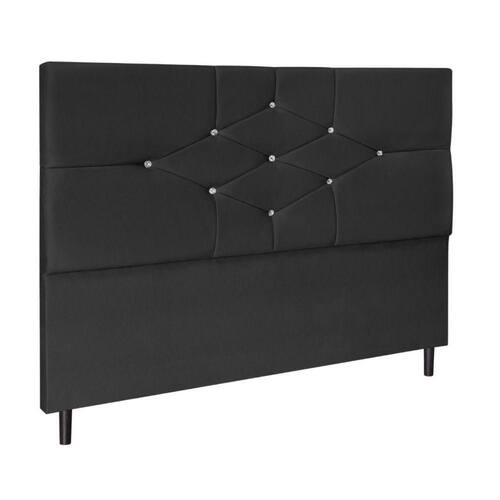 O destaque do design fica por conta do capitonê com aplicações de botões cristalizados, que formam um desenho em losangos na parte superior, trazendo charme e um leve brilho que valoriza ainda mais a peça. A estrutura é bem definida, com linhas retas e acabamento impecável.