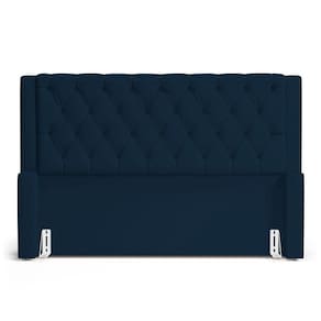 Cabeceira Cama Box Queen Size Atena 180cm Capitonê com Frame Veludo Azul Marinho - Desk Design