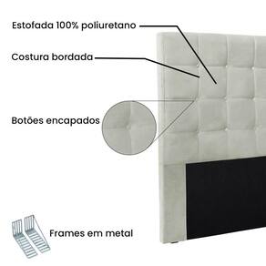 Dormir bem e manter-se seguro na hora de relaxar são fatores importantes que influenciam na qualidade do sono. Unir esses pontos com uma decoração incrível seria perfeito, não é mesmo? Que tal começar essa mudança pela cabeceira da sua cama!? A Cabeceira Verona sem dúvida vai roubar a cena de tão linda e aconchegante! Contém estrutura feita em madeira de eucalipto, uma opção que ressalta a durabilidade e beleza da peça. A cabeceira é preenchida com espuma D23, garantindo um conforto ideal para noites mais tranquilas. Este modelo é indicado para Cama Box Solteiro de 90 cm, possui costura quadriculada e Botões encapados que conferem uma textura maleável e um visual refinado. O revestimento foi feito no Veludo, um tecido de alta qualidade perfeito para criar uma atmosfera mais aconchegante ao local. As sapata são de plástico além de serem muito resistentes garantem maior ibilidade e sustentação à peça. E não menos importante acompanha frame em metal que é o suporte ideal para fixar a cabeceira na cama box. O design desta peça apresenta um elemento estético sofisticado, que transformará instantaneamente o ambiente e impedirá que a passagem de temperaturas (frio/quente) que se concentram na parede, passem diretamente para o usuário. A Cabeceira Verona é a opção mais adequada para o seu dormitório, afinal de contas você merece o que há de melhor para completar a decoração da sua casa. Adquira a Cabeceira Verona antes que acabe o estoque!