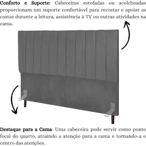 Revestimento em Suede: O revestimento em suede não só é luxuoso ao toque, mas também é fácil de limpar, garantindo que sua cabeceira mantenha sua beleza ao longo do tempo.