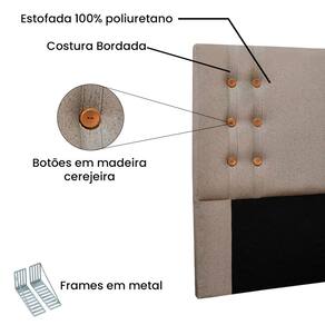 Sua estrutura garante durabilidade e resistência. O revestimento em tecido linho proporciona um toque suave, e conforto ideal para momentos de descanso ou leitura. Os botões de madeira de cerejeira trazem um charme, elevando o estilo do seu quarto. Renove o visual do seu espaço, compre já!