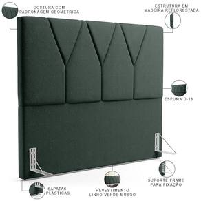 Madeira de EucaliptoA Cabeceira Cama Casal 140cm Aura Linho W01 Verde, da Mpozenato, vai levar beleza e conforto para o Quarto de Casal, confira os detalhes!