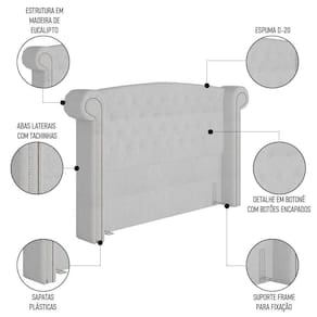 Essa Cabeceira Casal Estofada é um luxo só, isso porque o seu design curvo somado aos botões revestidos cria um ambiente clássico e charmoso, como toda Cabeceira Provençal. Já as abas laterais com aplicação de tachinhas são um charme a parte, pois o desenho delineado remete às colunas jônicas gregas, ou seja, muito mais que um móvel estofado, você terá em casa um ícone de decoração inspirado na mais bela arquitetura. Chega de falar de beleza e vamos falar de funcionalidade, afinal, ter uma Cabeceira Estofada é certeza de conforto e bem-estar, principalmente naquele momento de descanso quando você dá uma pausa para ler um livro e recosta a cabeça em um apoio macio e suave ou simplesmente quando quer ficar em silêncio por algum tempo, viajando mundo afora pelo .