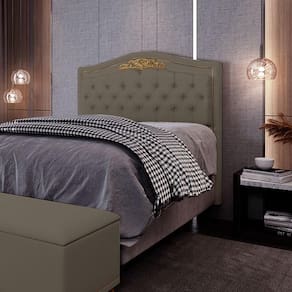 Uma cabeceira pode fazer toda a diferença na hora de relaxar e descansar depois de um dia cansativo. Esta Cabeceira Estofada, possui um design moderno e elegante, detalhes de botonê e contorno em tachas na cor fumê que dão um toque de sofisticação ao ambiente. A cabeceira acompanha frame para fixação no e tem os pés plásticos que facilitam a instalação e a limpeza. A Cabeceira para Cama é feita de material resistente e durável que garante qualidade e beleza ao seu móvel. Por falar em beleza a Cabeceira Imperial além de ser um elemento decorativo é muito funcional.