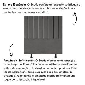 Fabricada com materiais de alta qualidade, como madeira eucalipto e revestimento em Suede, esta cabeceira é durável e resistente, garantindo não apenas estilo, mas também funcionalidade para o seu ambiente.