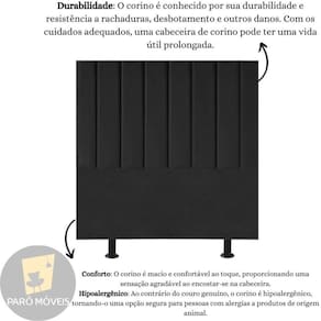 Fabricada com materiais de alta qualidade, como madeira eucalipto e revestimento em corino, esta cabeceira é durável e resistente, garantindo não apenas estilo, mas também funcionalidade para o seu ambiente.