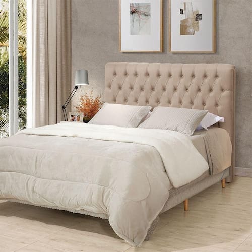 AS IMAGENS SÃO MERAMENTE ILUSTRATIVAS E PODEM SOFRER VARIAÇÕES DE COR E PEQUENOS DETALHES DE ACORDO COM O SEU MONITOR, ILUMINAÇÃO DO AMBIENTE E ATÉ MESMO A SUA PERCEPÇÃO VISUAL.Cabeceira Cama Queen Estofada 1,60 - Inca Linho Bege