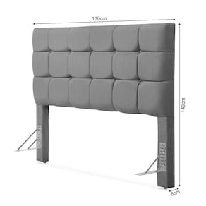Tipo: Cabeceira Modelo: Maia Cor: Cinza Tecido: Linho Estofado com tecido, toque suave e elegante Detalhe em capitonê (técnica de estofamento) quadriculado que valoriza o ambiente Estrutura resistente com pés e suportes metálicos de fixação Fabricada com madeira de reflorestamento (eucalipto/MDF) Instalação simples e prática - basta encaixar e fixar
