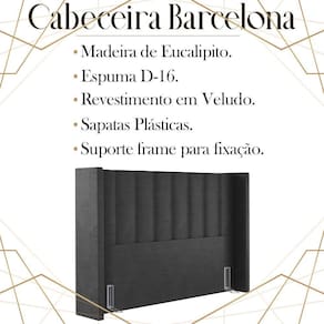 Cabeceira Casal 138 cm Barcell Veludo, ideal para inovar o seu quarto com toque luxuoso e ao mesmo tempo refinado. Estrutura em madeira de eucalipto, que oferece maior durabilidade ao produto. Composta por revestimento em tecido veludo, conta com espuma D-16 de altíssima qualidade, sapatas plásticas e acompanha frames para facilitar a fixação no box, é ideal para colchão Casal de 138 cm. Unindo elementos do design contemporâneo, que proporcionam uma ambientação moderna e com acabamentos sofisticados. Este móvel chegará na sua casa separado em 01 volume.
