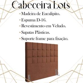 Cabeceira Casal 138 cm Lots Veludo, é a escolha certa para você que busca conforto e modernidade, tornando o seu quarto muito mais versátil e sofisticado. Estrutura em madeira de eucalipto, que oferece maior durabilidade ao produto. Composta por revestimento em tecido veludo, conta com espuma D-16 de altíssima qualidade, sapatas plásticas e acompanha frames para facilitar a fixação no box, é ideal para colchão Casal de 138 cm. Com design que proporciona elegância, charme e luxuosidade ao seu quarto. Este móvel chegará na sua casa separado em 01 volume.