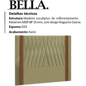 Cabeceira Casal 140 cm Bella Linho, perfeita para complementar sua cama e compor a decoração do seu quarto com muita elegância e luxuosidade. Estrutura em madeira de reflorestamento e painel em MDP BP de 15 mm, que oferece maior durabilidade ao produto. Composta por painel com superfície em estampa nogueira caiena, valorizando ainda mais o detalhe da madeira, revestimento em tecido linho, conta com espuma D-20 de altíssima qualidade, acabamento em kami, e acompanha frames para facilitar a fixação no box, é ideal para box Casal de 140 cm. Possui design moderno que transmitira charme e versatilidade ao seu ambiente. Este móvel chegará na sua casa separado em 01 volume.