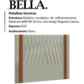 Cabeceira Casal 140 cm Bella Linho, perfeita para complementar sua cama e compor a decoração do seu quarto com muita elegância e luxuosidade. Estrutura em madeira de reflorestamento e painel em MDP BP de 15 mm, que oferece maior durabilidade ao produto. Composta por painel com superfície em estampa nogueira caiena, valorizando ainda mais o detalhe da madeira, revestimento em tecido linho, conta com espuma D-20 de altíssima qualidade, acabamento em kami, e acompanha frames para facilitar a fixação no box, é ideal para box Casal de 140 cm. Possui design moderno que transmitira charme e versatilidade ao seu ambiente. Este móvel chegará na sua casa separado em 01 volume.